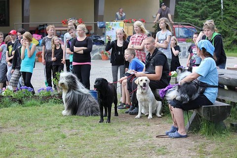 Leiriläisiä oli 33 nuorta, tyttöjä ja poikia. Tänä vuonna meillä oli ilo saada yhteistyökumppaniksemme Pielisen Aktiivikoirat ry. Nimensä mukaisesti aktiivikoirista löytyi myös aktiiviohjaajia, jotka olivat paneutuneet ohjelmaan todella ammattitaitoisesti ja hyvin.