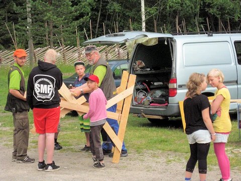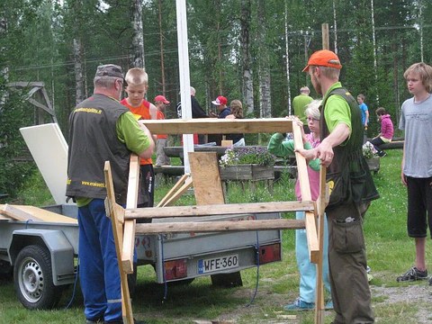 Leirilla oli tekemisen meininkia mm. rakennettiin ruokintalautta, ruokintakatoksia ja askarreltiin naruleluja koirille. Leirin monipuoliseen ohjelmaan kuului rantakalailta, patikkaretki luontoon, erapolkukilpailu, uintia, kalastusta ja saunomista. Ensiaputaitoja opeteltiin rastiradalla, jossa nahtiin Oscarin arvoisia näytelmasuorituksia pestatuilta potilailta ja varsinkin keittion ”palovammapotilaalta.”Esteratakilpailussa leirijoukkueet kilpailivat koiria vastaan. Tiukassa kisassa leirilaiset taituroivat voittoon.